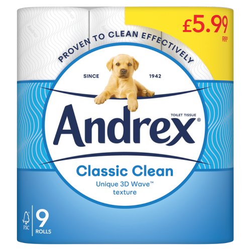 Andrex Toilet Tissue Classic Clean PM £5.99 9 Roll50290535829935029053582993